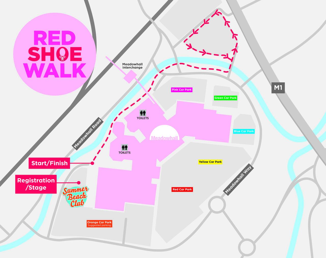 Free entry to the Meadowhall Summer Beach Club will be offered on the day to all those participants wearing their Red Shoe Walk t-shirt